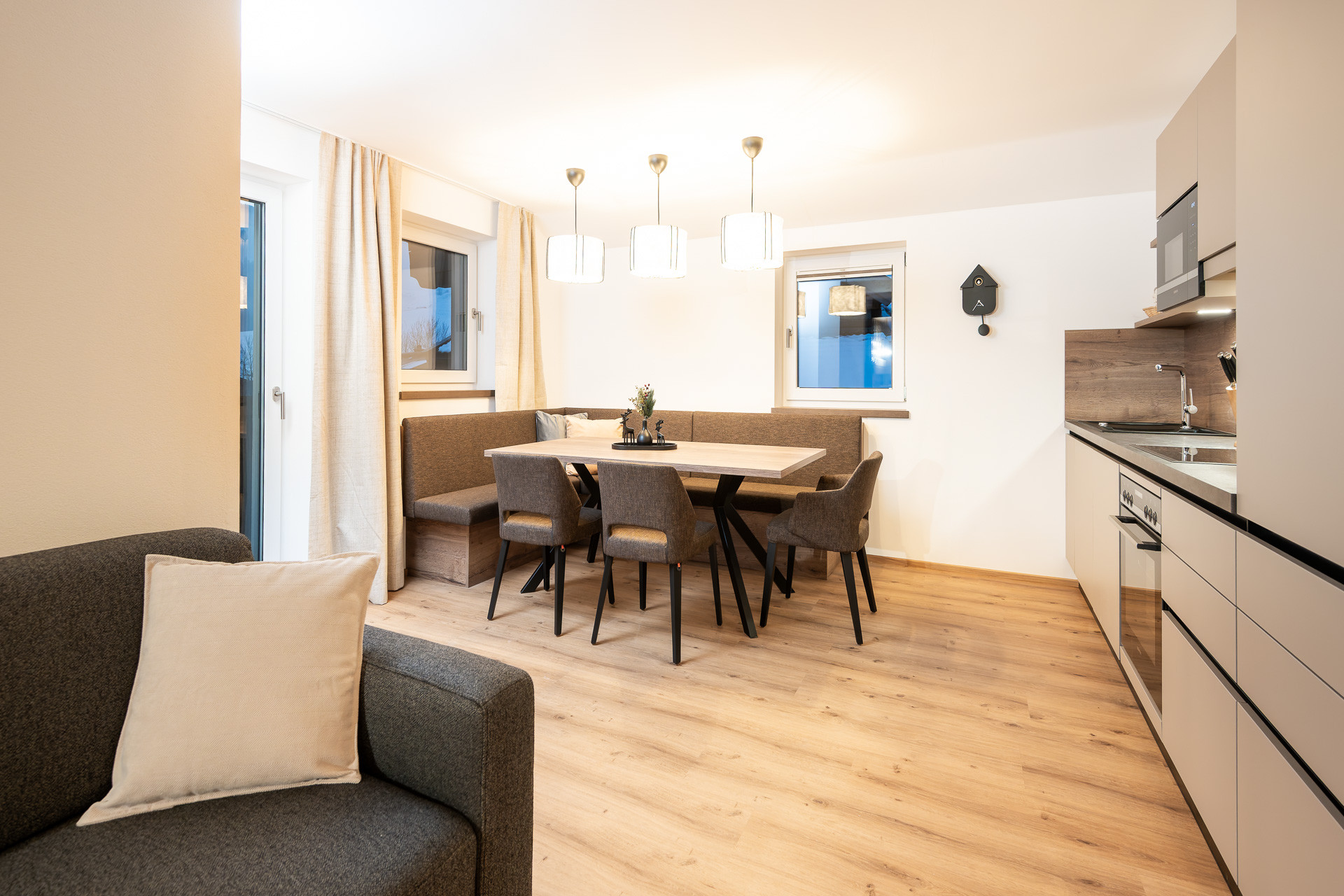 Eine hochwertig ausgestattete Ferienwohnung mit privater finnischer Sauna, Terrasse mit Bergblick und stilvollem Alpenflair. Warme Materialien, durchdachte Details und moderne Geräte sorgen für alpinen Komfort auf höchstem Niveau.